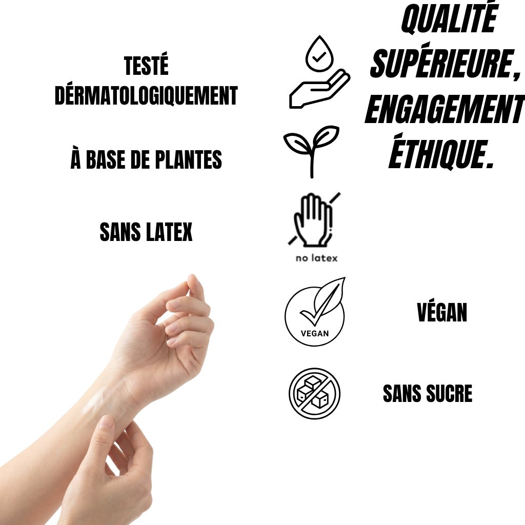 Sans latex, respectueux des peaux sensibles au quotidien.