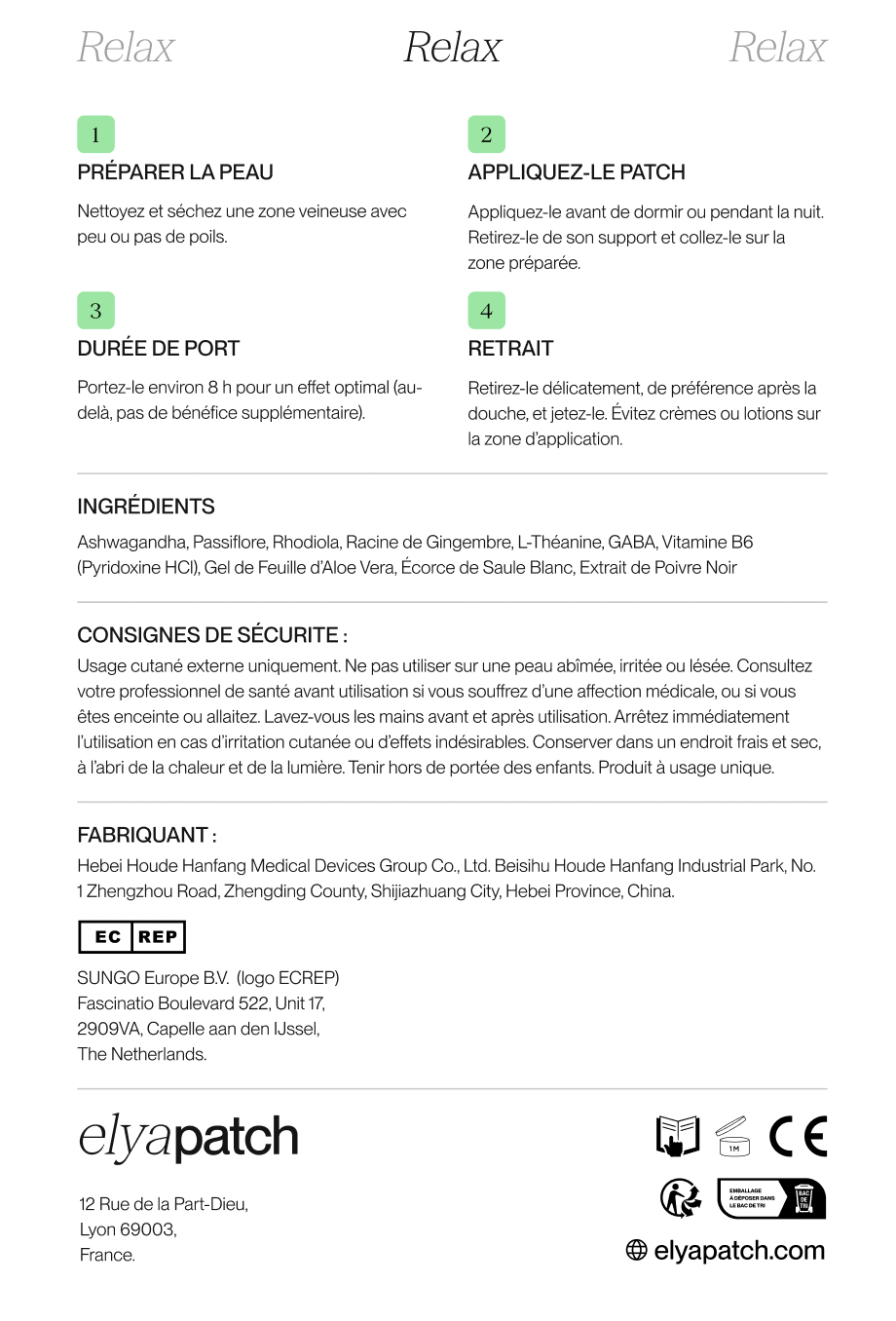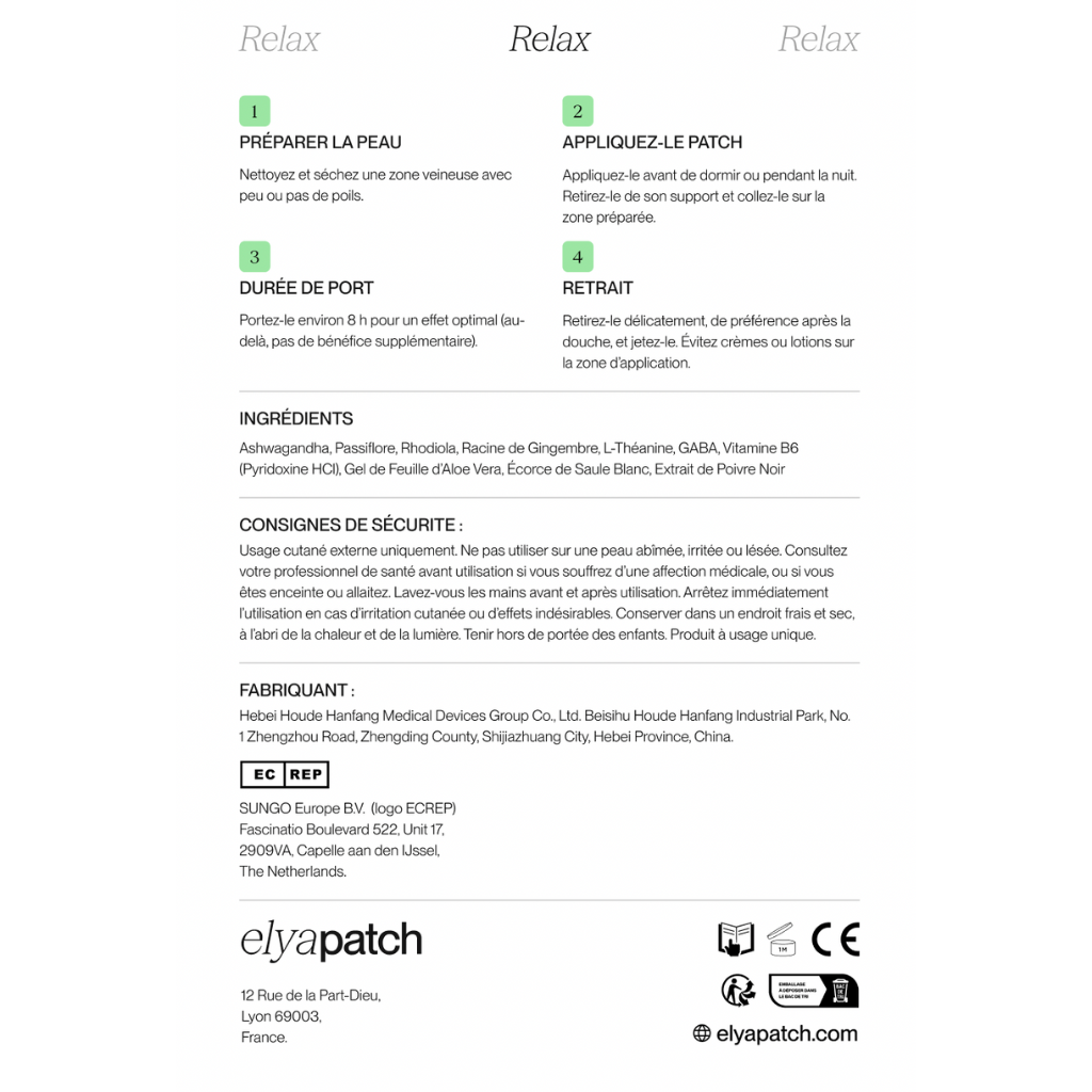 Par précaution, nos patchs ne sont pas recommandés pour les femmes enceintes, allaitantes, les enfants ou toute personne suivant un traitement médical sans avis d’un professionnel de santé.